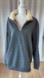 Cozy sherpa-lined pullover in gray with tan elbow patches and a half-zip front. Super soft, warm, and comfy—perfect for casual wear or lounging.