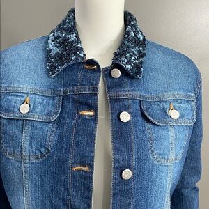 Blumarine Denim Jacket with Sequin Collar Embroidery on back Size small