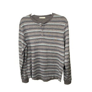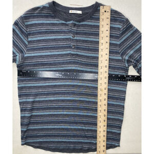 Marine Layer Shirt Mens Small Blue & Grey Striped Henley Double Knit Soft Baja