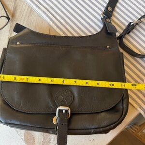 Patricia Nash Stylish black leather crossbody bag with adjustable strap and buckle detail. Perfect for everyday use.