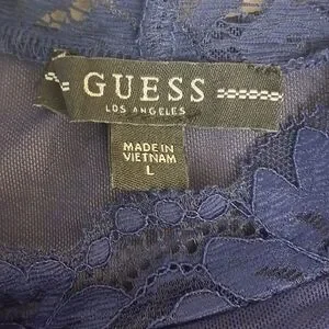 Guess Lace Sheer Top Blue Large Crop Fairy Feminine Delicate
