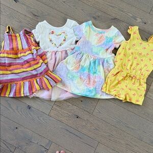Vibrant collection of kids' clothing bran cat & jack Includes dresses and tops in various colors like purple, orange, green, and red. Perfect for a playful wardrobe.