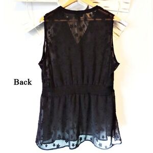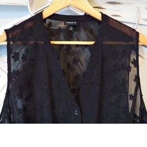 Torrid Black Semi Sheer Sleeveless Button-Down Blouse w/ Star Detail in a Size 1. Material is 100% Poly. Machine Wash/Tumble Dry.