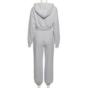 women 2 piece outfits hooded sweatsuit set,long sleeve crop top sweatshirt and long pants tracksuit set outfits,drawstring crop top and high waisted pants gym clothes set,sport jogger workout outfits set.