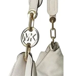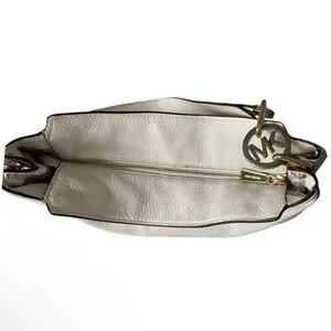 Michael Kors Leather Hobo Bag Shoulder Bag Cream White Gold