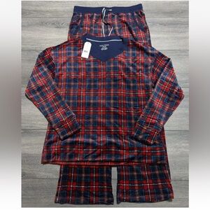 Nautica Plaid velvet Pajama Set - Red and Blue size large Cinched waist