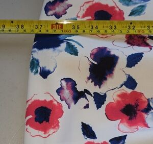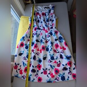 Pretty floral fit and flare! White with bright pink and blue floral pattern.