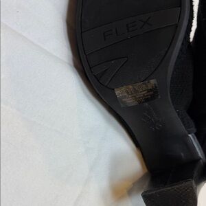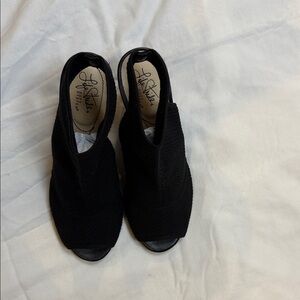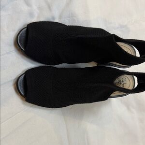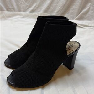 Life Stride Black Knit Peep-Toe Heeled Boots size 8.5 stretchy and comfortable