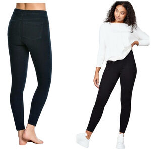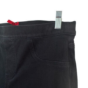 Good used condition, no flaws. Black, pull-on, lightweight ribbed denim jeggings with stretch and tummy control. Size Large (marked as an 8).