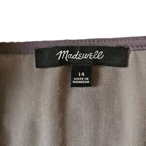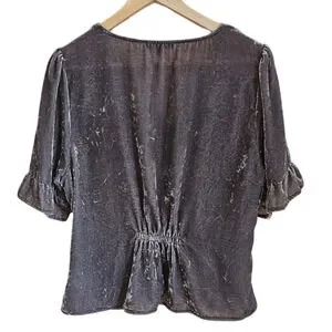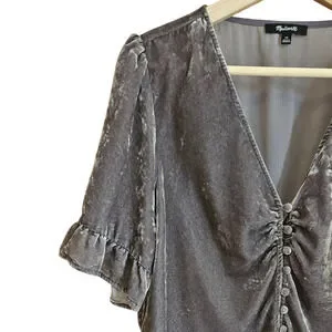 Madewell Women’s Velvet Blouse Button Front Puff Sleeve Ruffle Grey Size 14