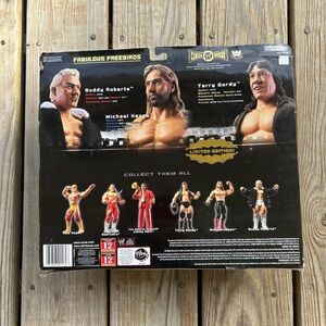 The Fabulous Freebirds Limited edition WWE Classic Superstars action figures set. Features three iconic wrestlers in detailed attire. Perfect for collectors.