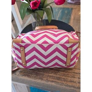 Dooney Bourke Chevron Pink White Satchel Handbag Leather Trim