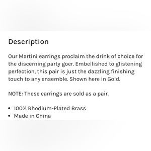 Brand New with Tags. Retrofete Martini Earrings.