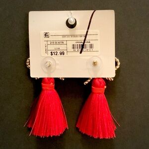 NWT SUGARFIX BY BAUBLEBAR Red Tassel Earrings with Gold Bows