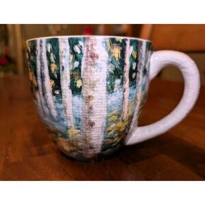 Pier 1 Imports Ironstone Ceramic Birch Trees Forest Art Pattern Coffee Mug Large