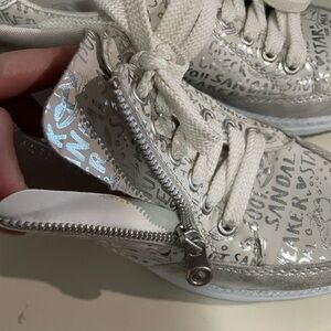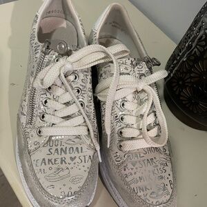 Stylish Rieker sneakers with a white and silver design. Perfect for casual wear. Comfortable and chic.