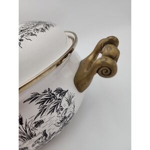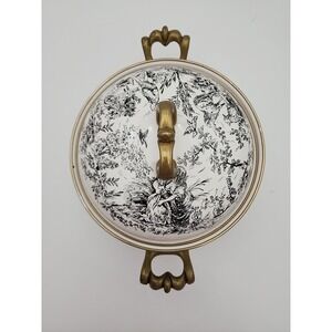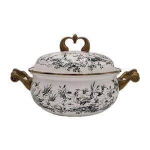 Tabletops Unlimited Pot with Lid Brass In English Toile Enameled Pattern 9"x 5"