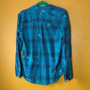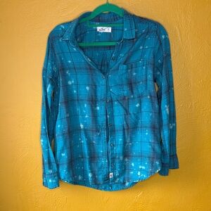 Hollister M Blue Plaid Button-Up Distressed Flannel Shirt