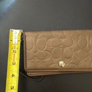 Coach Bronze Signature Embossed Snap Wallet w/Wristlet Strap & Mini Hangtag Flaw