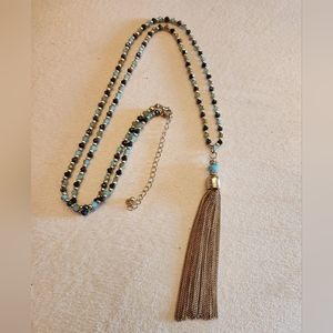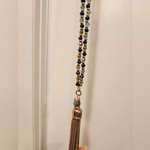 Multifaceted Crystal Tassel Lariat Necklace - Blue & Gold
