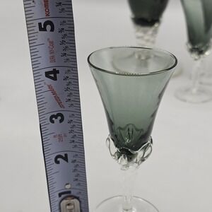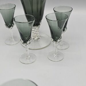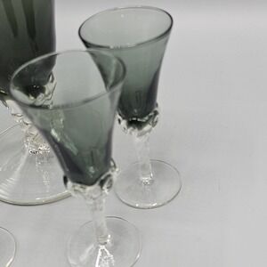 Vintage Empoli Italian Smoke Grey Decanter & Cordial Glasses Set 5 Twisted Foot