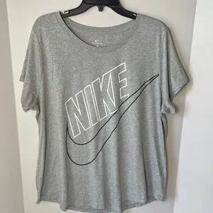 Nike Women's Size 1X ( Oversized ) Heather Gray Tee with Black Outline Logo