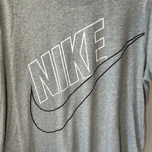 Heather gray short sleeve tee. Features outlined black Nike logo. Soft fabric for everyday wear.