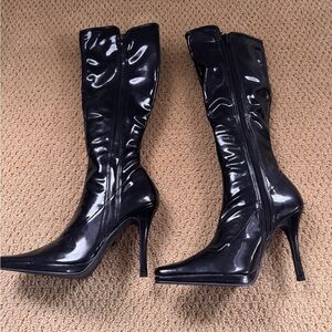 Step out in style with these sleek black patent leather knee-high boots. Perfect for any occasion, these boots offer both elegance and comfort. Brand new never used. Chinese Laundry brand. Size 8m