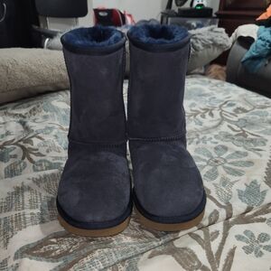 Navy suede Authentic Ugg boots with a soft interior. Features a tan sole and UGG branding. New never worn. I am up for reasonable offers only. Thank you!