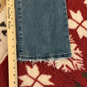 Keywords: Democracy Jeans, Petite Denim, Bootcut Style, Frayed Hem, Distressed Jeans, Comfort Waistband, Casual Wear, Everyday Denim, Trendy Jeans, Women's Fashion, Medium Wash, Fashionable Denim