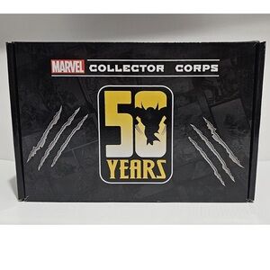 Celebrate the 50th anniversary of Wolverine with this Funko Marvel Collector Corps box! This subscription box includes a medium, two pops, a pin, and a sticker, all featuring the iconic character. The box is made of vinyl and is in its original packaging, unopened and exclusive.