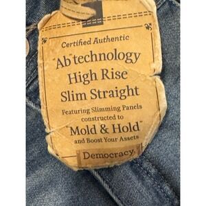 Keywords: Democracy Jeans, Women's Jeans, High Rise Jeans, Slim Straight Jeans, Ab Technology, Distressed Jeans, Frayed Hem Jeans, Size 16 Jeans, Comfortable Jeans, Flattering Jeans, Denim Jeans, Casual Jeans, Everyday Jeans, Fashionable Jeans