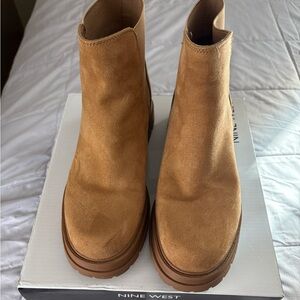 Chic dark natural ankle boots by Nine West. Chunky heels-fun and comfy! Cute with jeans! Size 7.5. In EUC-minimal signs of wear. From a smoke-free home