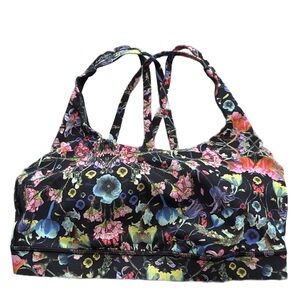 Vibrant floral sports bra with strappy back. Perfect for workouts.