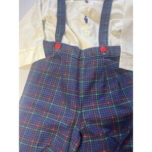 Vintage Great Guy Infant Nutcracker Embroidered Plaid Suspender Outfit USA 18M
