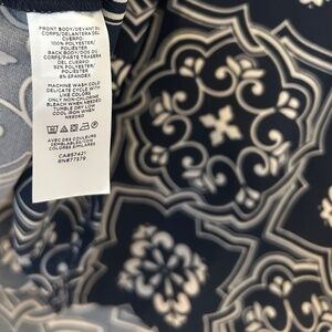 Blue and beige, XXS pullover blouse, slightly gathered yoke on back, v-neck front, approximately 21 inches from center back, slight gather at shoulders, approximately 14 inches from v-neck bottom to front, machine wash cold and tumble dry