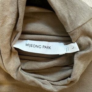 Mijeong Park lightweight beige jersey top - Size L. Easy-wearing, long-sleeve, roll neck top. Slim fit.