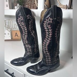 Vintage Hondo Western Boots Women’s 5.5B Black Leather Cowboy Classic Stitch