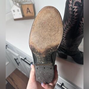 Authentic vintage Hondo western boots crafted from genuine black leather with classic cowboy stitching along the shafts. These are beautifully made, true western boots with traditional craftsmanship and timeless style.