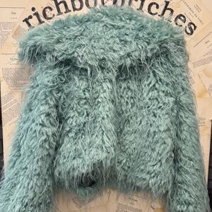 Free People Moonlight Faux Fur Jacket Collar Slouchy Cropped Granite Green