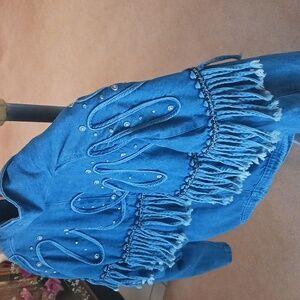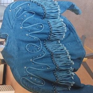 Vintage Women's Denim Jacket With metal Studs& Frayed Rope Design, store "Cache"