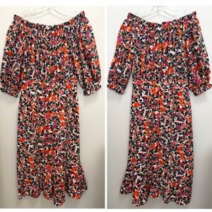SALONI Grace Silk Midi Dress Off Shoulder Floral Multi Size 8