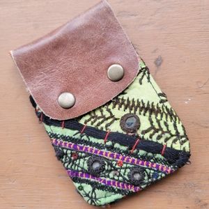 Made from vtg recycled garment remnants missing mirrors/embellishments, loose threads stitching embroidery stains Marks all part of the imperfectly perfect aesthetic. Small wallet pls see pic w/dims..for credit/debit cards/ids/& some $whatever currency ur travels take u.each is different so pls be sure to look at all pics carefully
