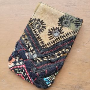 🌎👽 Free People Boho Embroidered Repurposed vtg banjara hippie Wallet card case