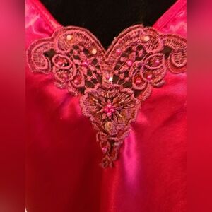 Unforgettable Nightgown Fuschia Satin Embroidered And Sequined Butterfly Sz L