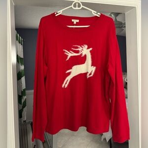 NWT Talbots Red Crewneck Sweater with Reindeer Design