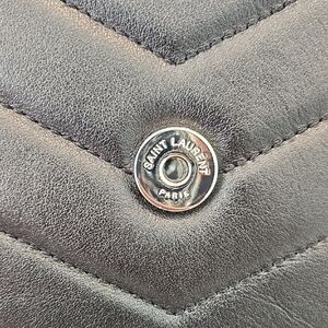 Silver-toned metal hardware. Sliding chain shoulder strap can be worn single or doubled. Envelope flap with signature YSL hardware.