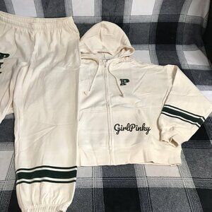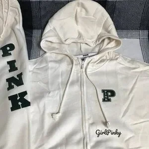 VS PINK SWEATPANTS OUTFIT & FULL ZIP IN WHITE SHELL & DARK FOREST GREEN L XL XXL