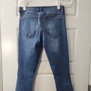 Blue skinny jeans with distressed knees. From GAP's 2016 Fall Collection. Perfect for casual outings. Cotton/Polyester/Spandex blend for stretchy comfort.
