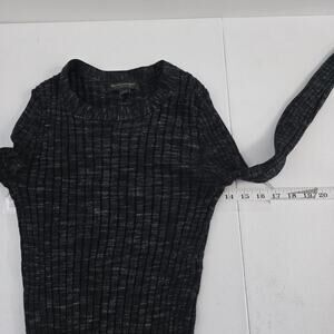 Banana Republic Womens Small Black Gray Wide Rib Merino Wool Long Sleeve Sweater